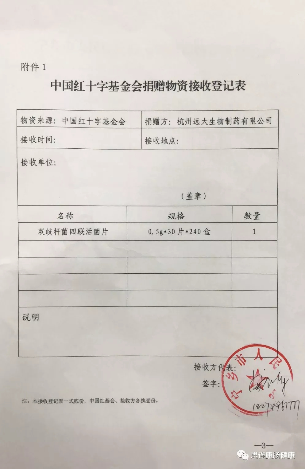 郴州市第二人民醫(yī)院發(fā)來(lái)中國(guó)紅十字基金會(huì)捐贈(zèng)物資接收登記表確認(rèn)已經(jīng)收到捐贈(zèng)藥品。